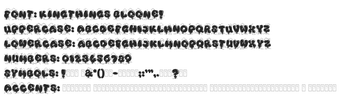 Kingthings Bloone! เป็นฟอนต์แสดงผลที่มีชีวิตชีวาออกแบบมาสำหรับการปรับแต่งที่สร้างสรรค์ ตัวอักษรที่เล่นสนุกมีรูปทรงหนาและฟูฟ่อง พร้อมด้วยการตกแต่งที่เหมือนเมฆที่เป็นเอกลักษณ์ซึ่งสร้างความรู้สึกมีชีวิตชีวาและเข้าถึงได้ ฟอนต์นี้มีสไตล์ที่หลากหลาย เช่น การเติมสีทึบและเส้นขอบ ทำให้เหมาะสำหรับการใช้งานที่หลากหลายรวมถึงโลโก้ โปสเตอร์ และคำเชิญงานต่างๆ น้ำหนักที่หนาและรูปทรงกลมเพิ่มเสน่ห์ให้กับการสร้างแบรนด์ที่เล่นสนุก โดยเฉพาะในธีมเด็ก